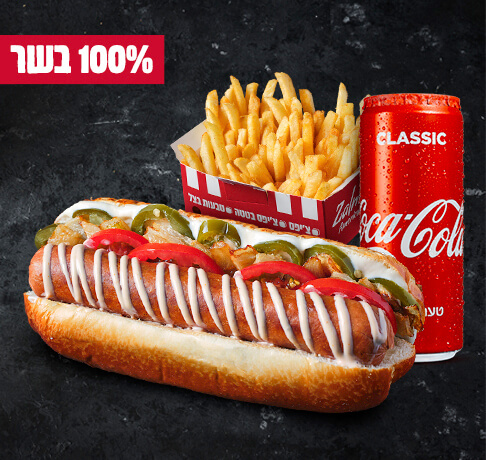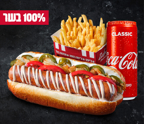 נקניקיות השף של זלמנ'ס - (בקר / בקר חריף / בקר פיקנטי / עוף עסיסי) + צ'יפס + שתייה