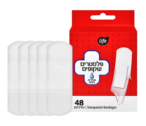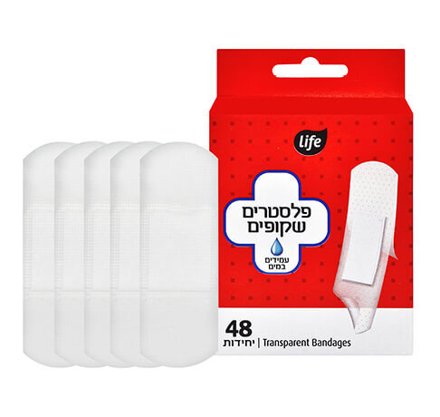 לייף פלסטרים שקופים עמידים במים מארז 48 יחידות ב-6.90 ₪ במקום 18.90 ₪