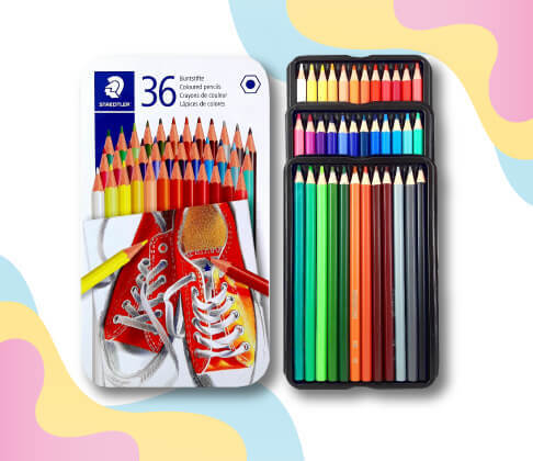 שטדלר סט עפרונות צבעוניים בקופ' פח 36 צבעים יחידות ב-29.90 ₪ במקום 65 ₪